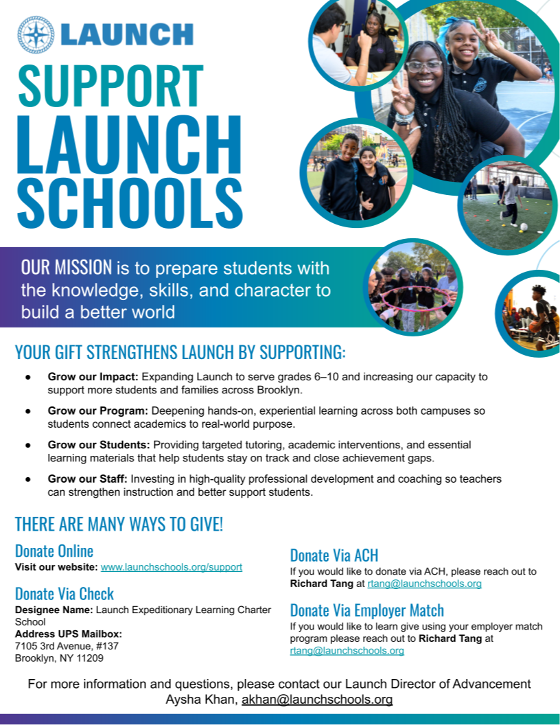 Grow our Impact: Expanding Launch to serve grades 6–10 and increasing our capacity to support more students and families across Brooklyn.
